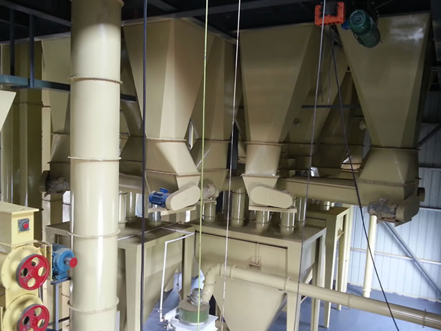 “1-8萬(wàn)噸級(jí)飼料工廠 我廠承建的年產(chǎn)1萬(wàn)—8萬(wàn)噸級(jí)配合顆粒飼料工廠,其工藝流程為:原料清理、粗、細(xì)粉碎、電腦配料、高效混合、調(diào)質(zhì)顆粒、顆粒熟化、冷卻干燥、分級(jí)、成品打包等。電器控制采用中央控制室集中監(jiān)控,并輔以各主要工段現(xiàn)場(chǎng)分段控制相結(jié)合的方式。也可根據(jù)客戶要求,采用工廠計(jì)算機(jī)集散控制系統(tǒng);各工段設(shè)備啟停均由PLC控制、同時(shí)在計(jì)算機(jī)上可動(dòng)態(tài)顯示各設(shè)備的運(yùn)行及故障報(bào)警狀態(tài),并具有數(shù)據(jù)庫(kù)管理功能。機(jī)組生產(chǎn)流程設(shè)計(jì)科學(xué)、布局合理、配料精度高、功能齊全、操作維護(hù)方便?!?/p>