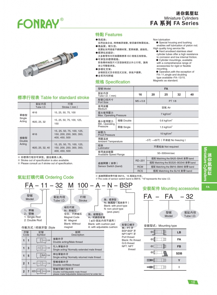 FONRAY芳銳氣缸 FA系列迷你氣缸