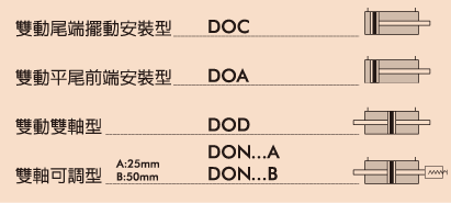 ● 圓型油壓缸DO系列,一律附有磁性感應(yīng),無緩衝裝置。